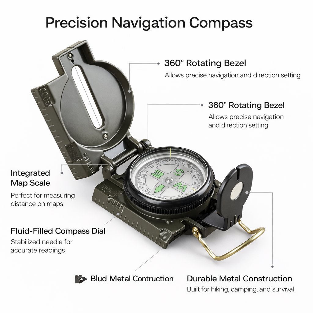 Professional precision compass built for hiking, camping, survival navigation, and real-world outdoor adventures.